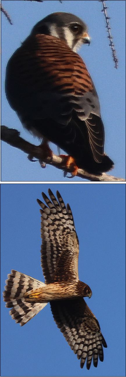 The harrier circled overhead several times before heading west and out of sight while the kestrel stayed in the area for most of the morning. At one time while trying to get shots of the harrier, the kestrel appeared. I wasn't aware of it at the time and only spotted the two together when checking photos on the home computer.
